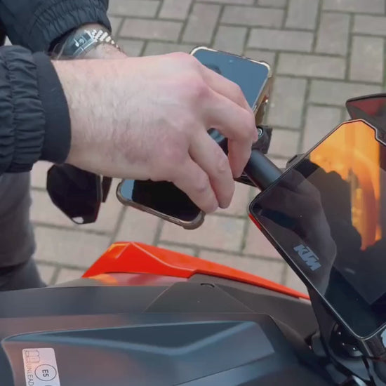 The holder has a minimal and elegant look, designed to integrate with your motorcycle's style. Functionality and design meet for a superior experience.